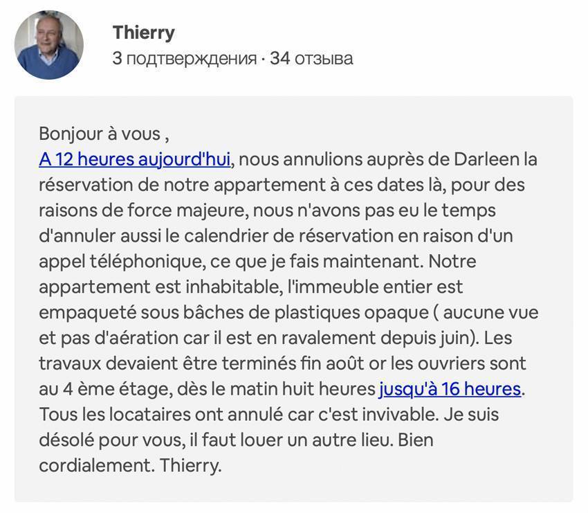 Что интересно, спустя месяц отзывов у Тьерри уже 36, поэтому кого-то в «непригодную для жизни» квартиру он все-таки принял.