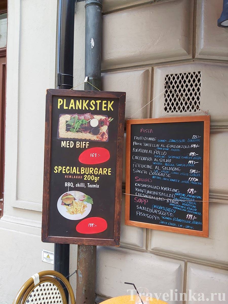 Вообще цены на еду не радуют, особенно в Старом Таллине. Если заглянете в Old Hansa, то увидите, что самое дешевое мясное блюдо стоит 14 евро. Пиво 0,5 л — от 6 евро (грустно вспоминается Прага с пивом за 1 евро). Или возьмем кафе Reval: основные блюда от 11 евро, десерты — от 2,20 до 8 евро, салаты от 5,5 евро.