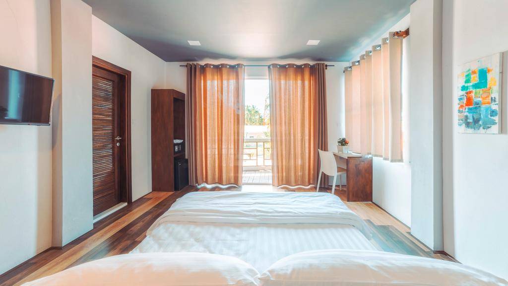 Наша комната в отеле на острове Расду. Чистый, опрятный, современный номер, со всем необходимым для комфортного отдыха. Почти все бюджетные отели на Мальдивах будут приличными и удобными, трешевых вариантов здесь нет вообще. Фото: booking.com.
