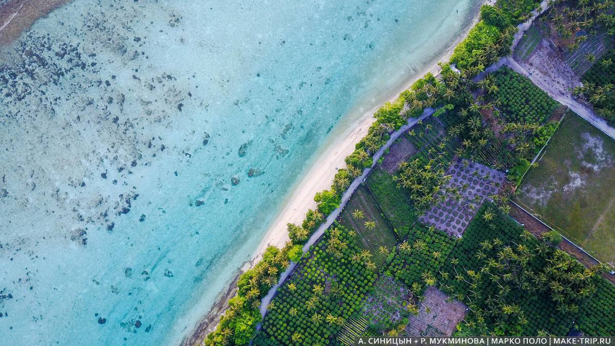 Остров Тодду — одна большая ферма, здесь выращивают фрукты и овощи. Вокруг много зелени и прогуливаться по острову приятно. На фото видно плантации и новый туристический пляж.