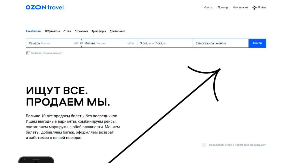 Круглосуточный поиск работает круглосуточно без комиссии, очередей, во время праздников и в выходные дни. Ozon travel проводит акции со скидками на жд билеты, бронирование отелей, страховку и трансфер из аэропорта. Стоимость полета за границу в интернете начинается от 6000 за перелет в столицу Чехии (Прага).