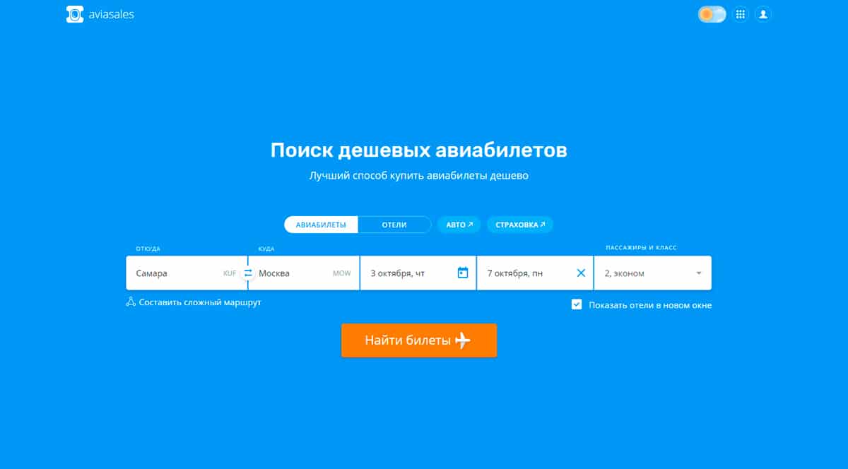 Aviasales не только предлагает самые дешевые цены, но и показывает бюджетные авиакомпании (лоукостеры), что дает полную гибкость при выборе. В разделе с специальными предложениями есть билеты в 220 стран мира от 100 агентств, например, рейс Москва – Анталия в летний период стоит от 3500 руб. в одну сторону.