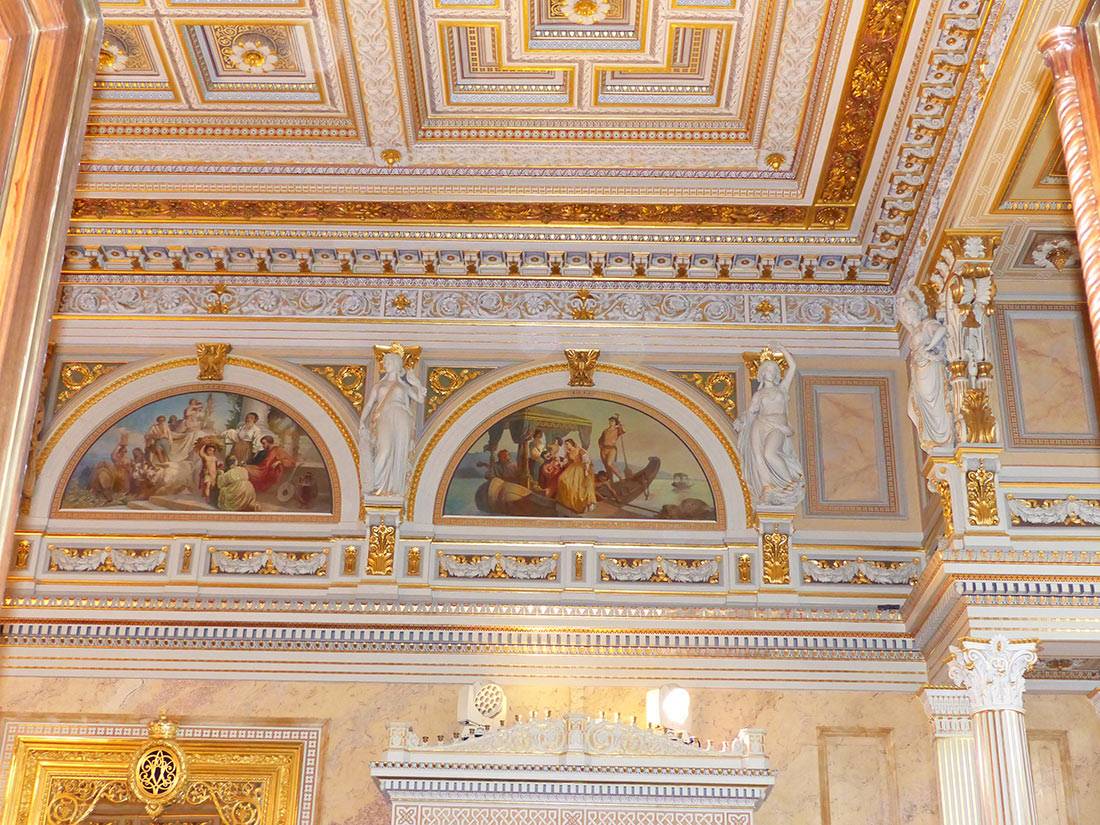 Днем в театре устраиваются бесплатные экскурсии, во время которых можно познакомиться с великолепным внутренним интерьером и потолочной росписью этого здания.