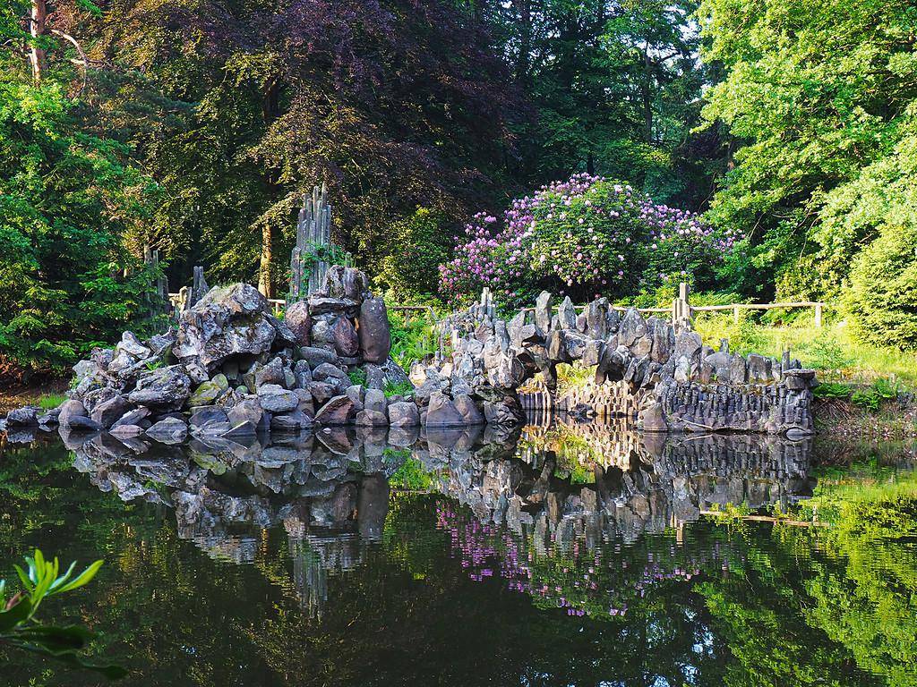 На территории парка расположено 11 скульптур из песчаника, выполненных в стиле барокко. А чего стоят Ущелье рододендронов, аллея Вздохов из ароматных и нежных азалий… В целом пейзажи парка более чем прекрасны! И это неудивительно, ведь зеленая зона создавалась специально как прилегающая территория к дворцу семьи Ретшке, который вы непременно увидите, гуляя по Kromlau.