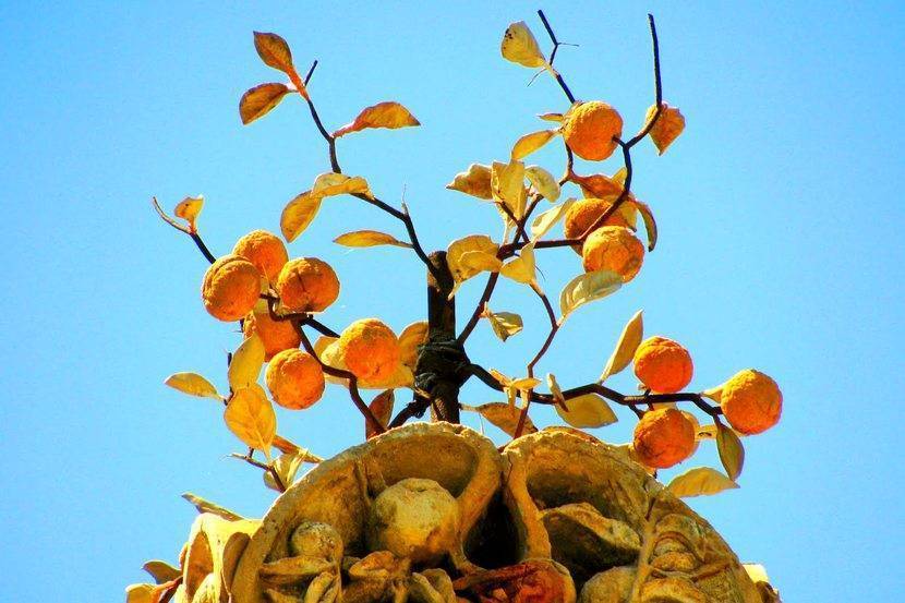 Именно под ней и расположены железные ворота, к которым цепями «навечно» прикован грозный дракон. Естественно, знать все легенды и мифы могут только специалисты, да и то, лишь избранные. Так вот, апельсиновое дерево и дракон как раз являются символом одной легенды, в которой рассказывается о волшебном саде Гесперид с «золотыми яблоками». Этот красивейший сад и его «золотые яблоки» стережет страшный дракон. Удивительно, но Гауди вспомнил эту легенду неспроста, ведь есть источники, в которых указывается на то, что название Испании и произошло от греческого слова «Гесперия» – названия сада, охраняемого мифическим существом.
