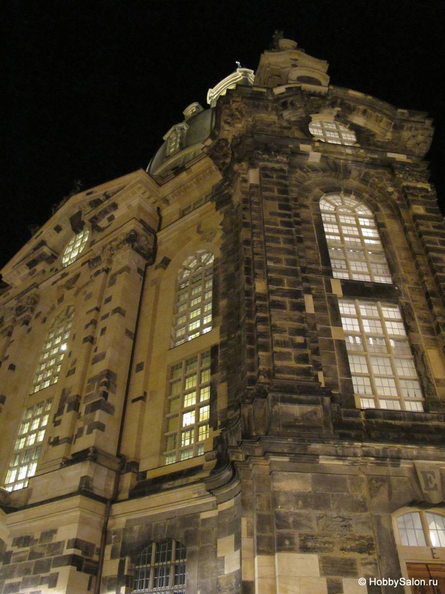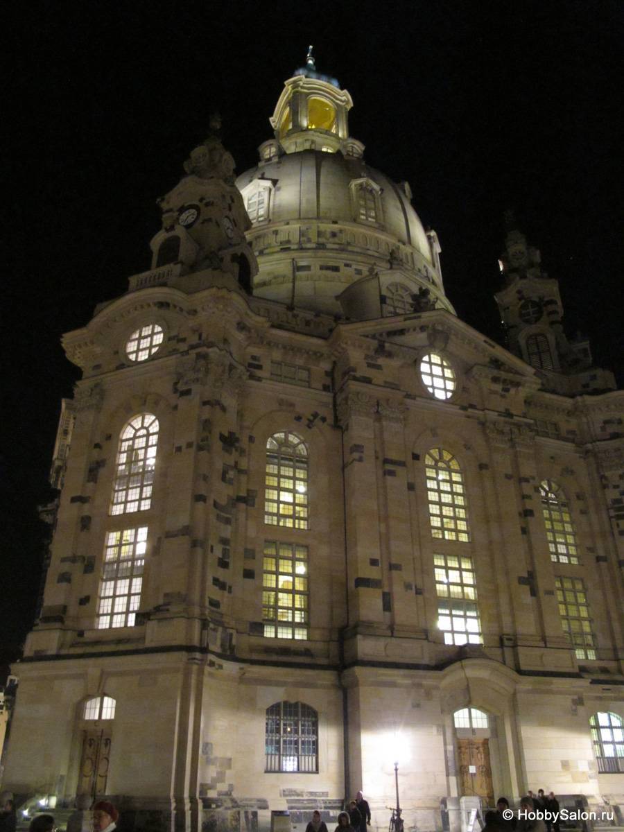 Возведение евангелической Фрауэнкирхе (Церкви Девы Марии) стартовало в 1726 году. Для создания барочного сооружения из песчаника, восхищающего изящностью форм и благородством линий, архитектору Георгу Бэру понадобилось 17 лет. Два столетия великолепный храм ежедневно принимал сотни прихожан, пока авиационные бомбы, как град сыпавшиеся с неба 13 и 14 февраля 1945-го, не превратили святой дом в руины.