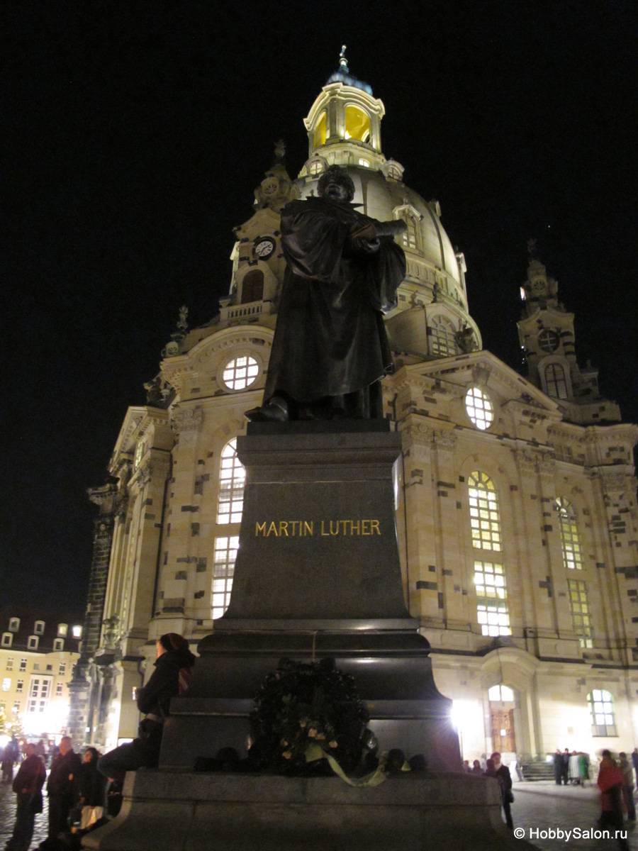Фрауэнкирхе с памятником Мартину Лютеру на переднем плане