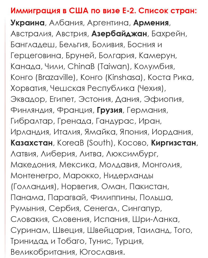 Список стран, граждане которых могут воспользоваться переездом в США по визе E-2: