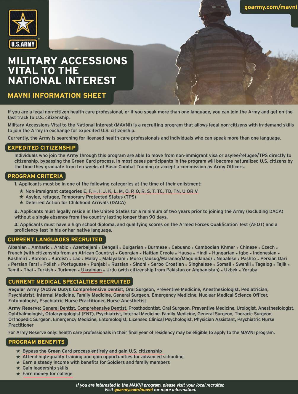 Можете перевести через переводчик. Вот ссылка – www.goarmy.com/content/dam/goarmy/downloaded_assets/mavni/mavni-general-information.pdf