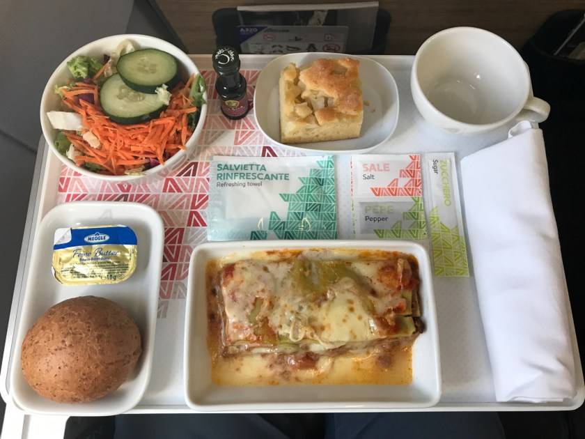 Питание на борту авиакомпании Alitalia предоставляется пассажирам всех классов. В экономклассе путешественники получают закуски и напитки, а при полетах свыше 3 часов – горячие блюда.