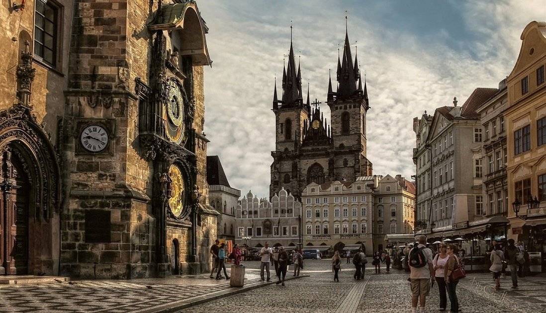 И далее продолжить прогулку по бесподобной Староместской площади. Каждый домик на ней имеет свое имя и почти в каждом домике расположен ресторан чешской кухни. Так же там следует осмотреть Тынский храм и посмотреть представление, которое устраивают астрономические часы «Орлой» Обычно программа первого дня на этом месте заканчивается.