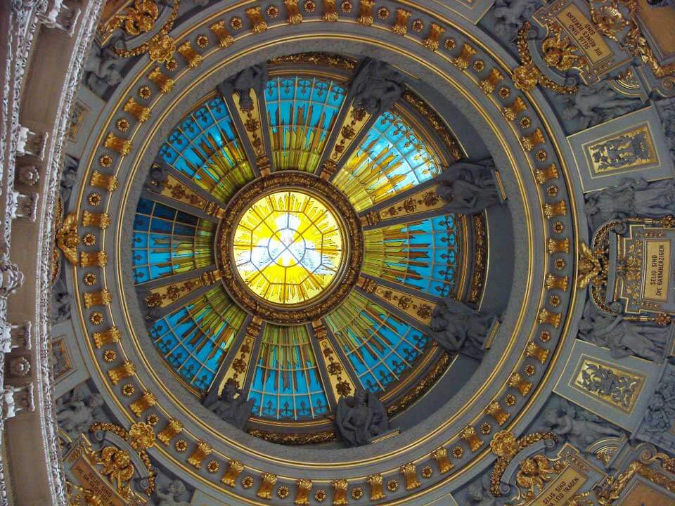 Величественный купол диаметром 33 м и высотой 74,8 м по всему периметру окружает бортик, на котором на одинаковом расстоянии друг от друга расположенные взирающие на небо ангелы. Их медные фигуры были установлены в период с 1978 по 1981 год. Фонарь на куполе венчает крест. На его покрытие затрачено 1,5 кг золота. Те из вас, кого не пугает восхождение по 270 ступеням, могут подняться на смотровую площадку, расположенную на галерее купола, и полюбоваться видами на Музейный остров, Жандарменмаркт, Рейхстаг и Красную Ратушу.
