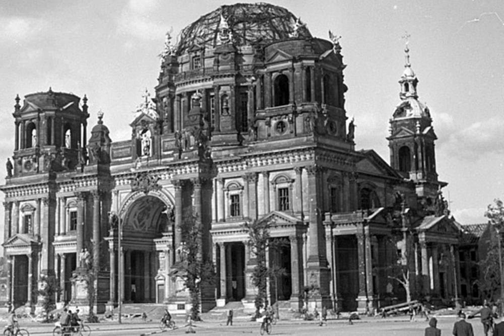 Во время второй мировой войны сооружение сильно пострадало от бомбардировок. В 1944 году в купол попала бомба, что привело к большому пожару. В результате сгорела деревянная обивка крыши, упавшая конструкция разрушила собор до самой усыпальницы. Некоторые гробницы полностью разбились. Когда в 1949 году Германию раздели на 2 части, Берлинский собор оказался на территории ГДР.