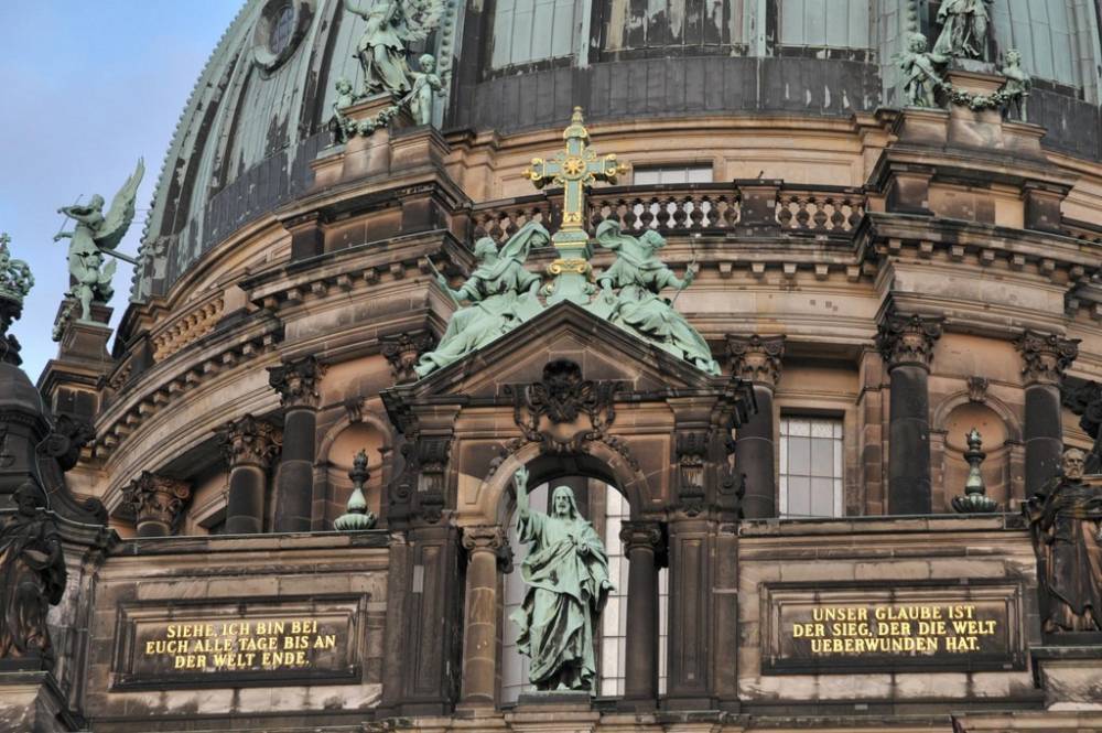 После второй мировой войны кафедральный собор в Берлине выстроили практически заново. С восточной стороны видно, что храм поделен на 3 части.