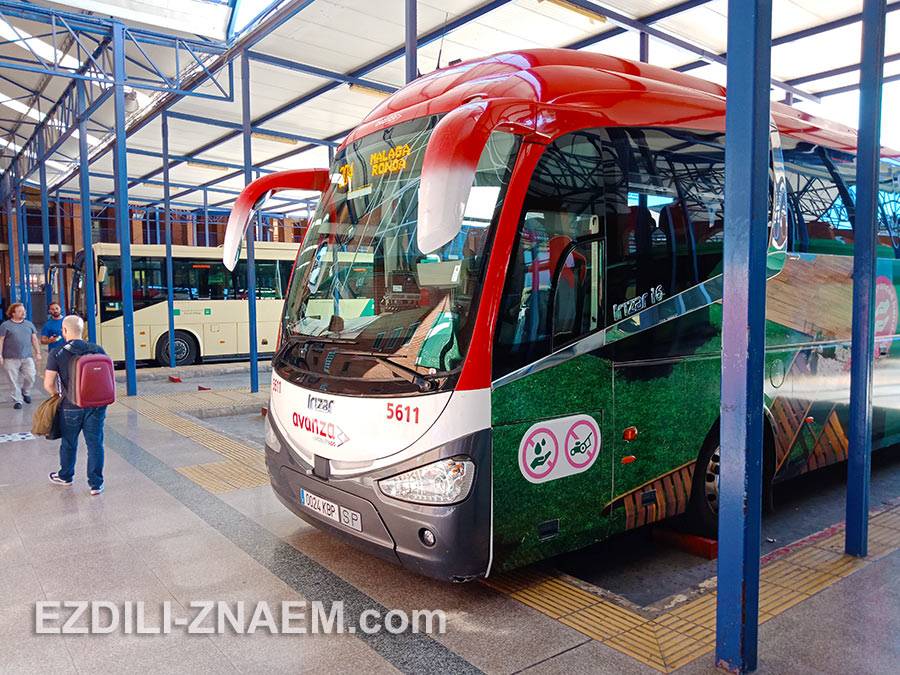 Автобус компании Avanza на автовокзале Малаги едет в Ронду с заездом в Марбелью