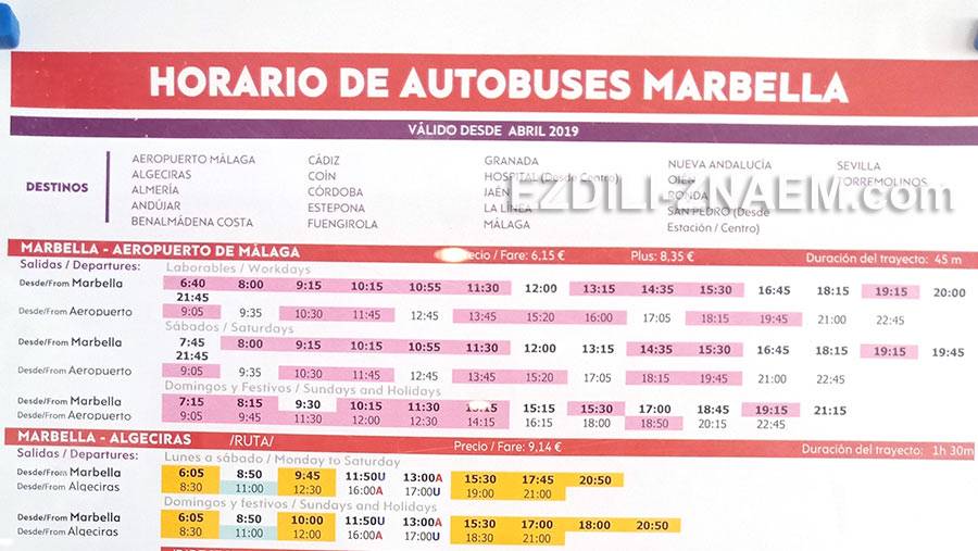 Вот расписание автобусов по маршруту из Марбельи в аэропорт Малаги и обратно: