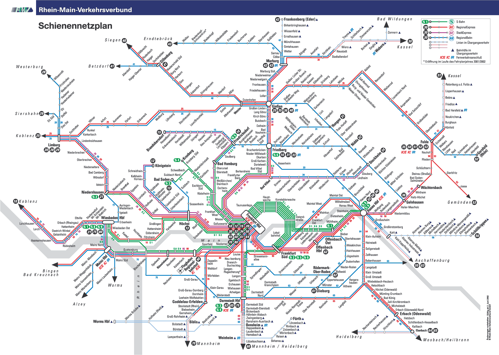 Ежедневно в течение дня курсируют поезда Прага — Франкфурт. Поездка предполагает пересадку в Дрездене bkb Нюрнберге длительностью 1,5–2 часа. Отправление осуществляется от Главного железнодорожного вокзала Праги, прибытие — на вокзал во Франкфурте.