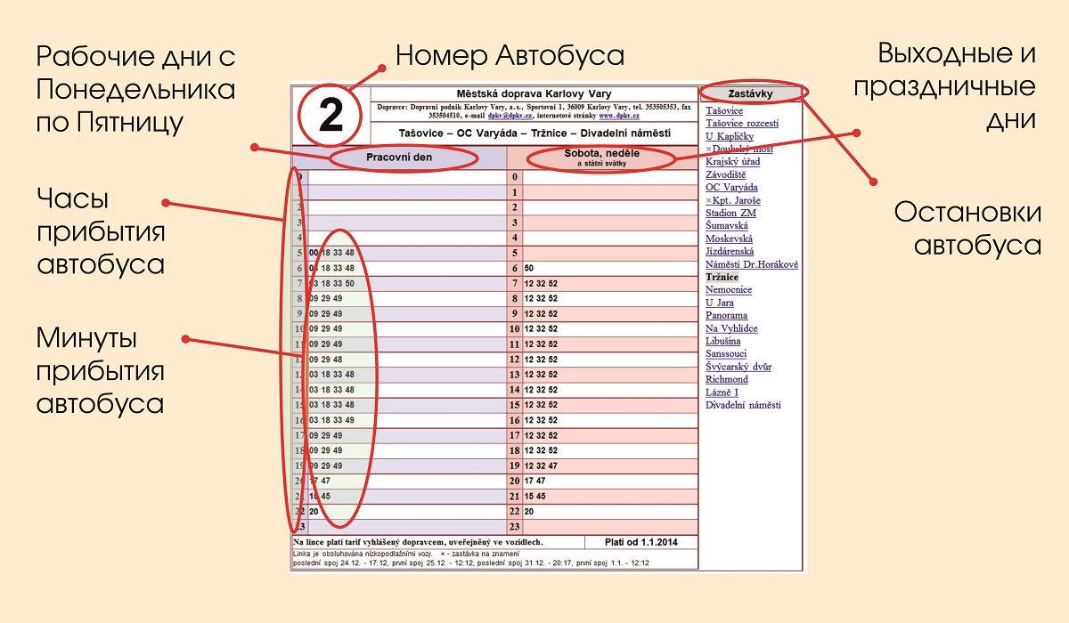Автобусы в Карловых Варах ходят нечасто, поэтому иногда на остановке придется постоять полчаса, а то и больше. Когда увидите, что подъезжает автобус нужного маршрута, поднимите руку, тогда автобус остановится. Если же Вы будете просто стоять, то он проедет мимо.