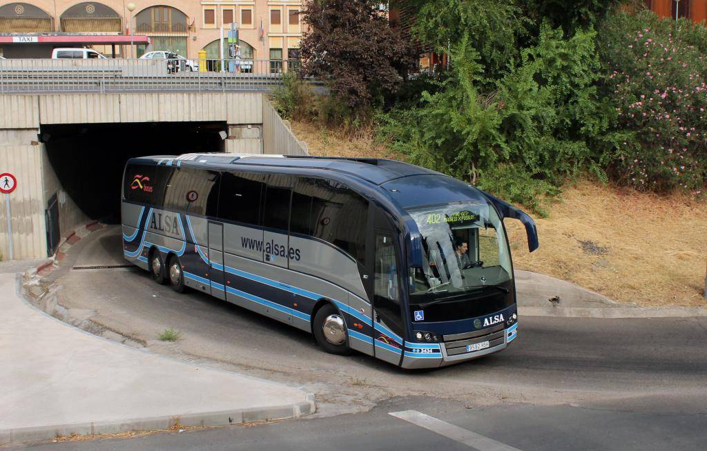 Быстрее всего расстояние преодолевают прямые автобусы компании Alsa, которые отправляются от станции Пласа Элиптика в Мадриде и прибывают на автостанцию Толедо, расположенную недалеко от центра города. Рейсы осуществляются каждые пятнадцать минут, время в пути от часа до полутора. Билет можно приобрести в автомате на автовокзале, придется потратить чуть меньше шести евро на проезд в одну сторону по маршруту Мадрид – Толедо.
