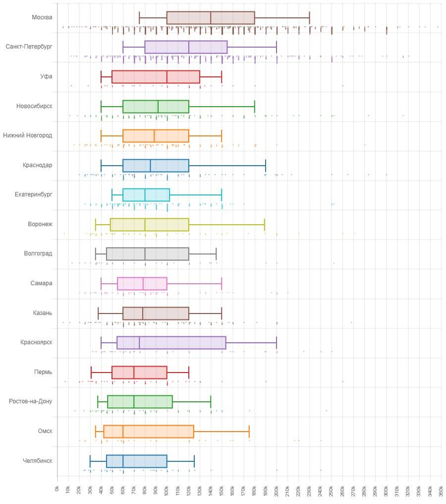 Зарплата и требуемый опыт работы в больших городах