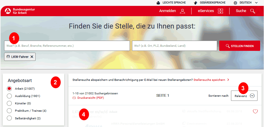 § Биржа труда Федерального агентства занятости в Германии – поиск подходящих вакансий, открытие личного профиля