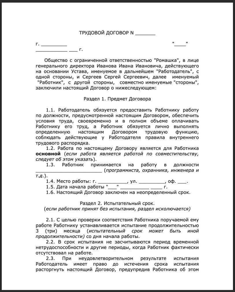 - трудовой договор;