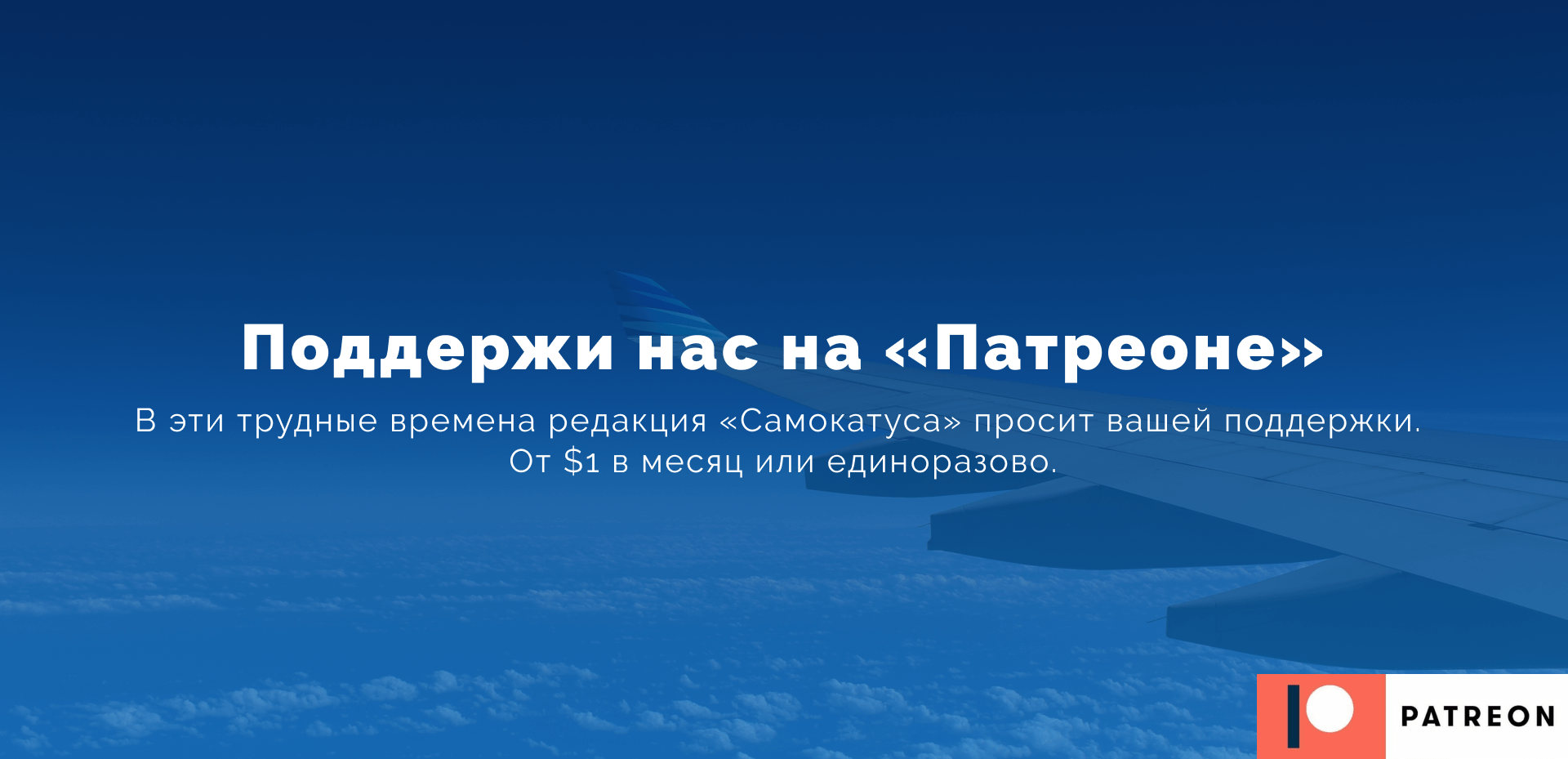 «Самокатус» просит вашей поддержки. Мы хотим выпускать больше классных материалов и продолжать находить для вас лучшие тревел-предложения. Вы можете пожертвовать редакции от $1 в месяц или единоразово на «Патреоне» (есть сбор на Яндексе). За $3 мы пришлем отрытку из места нашей самоизоляции, а за $75 вы получите статус спонсора, и мы прорекламируем вас или вашу компанию в телеграм-канале и с 100+ страниц сайта. Список наших текущих патронов: