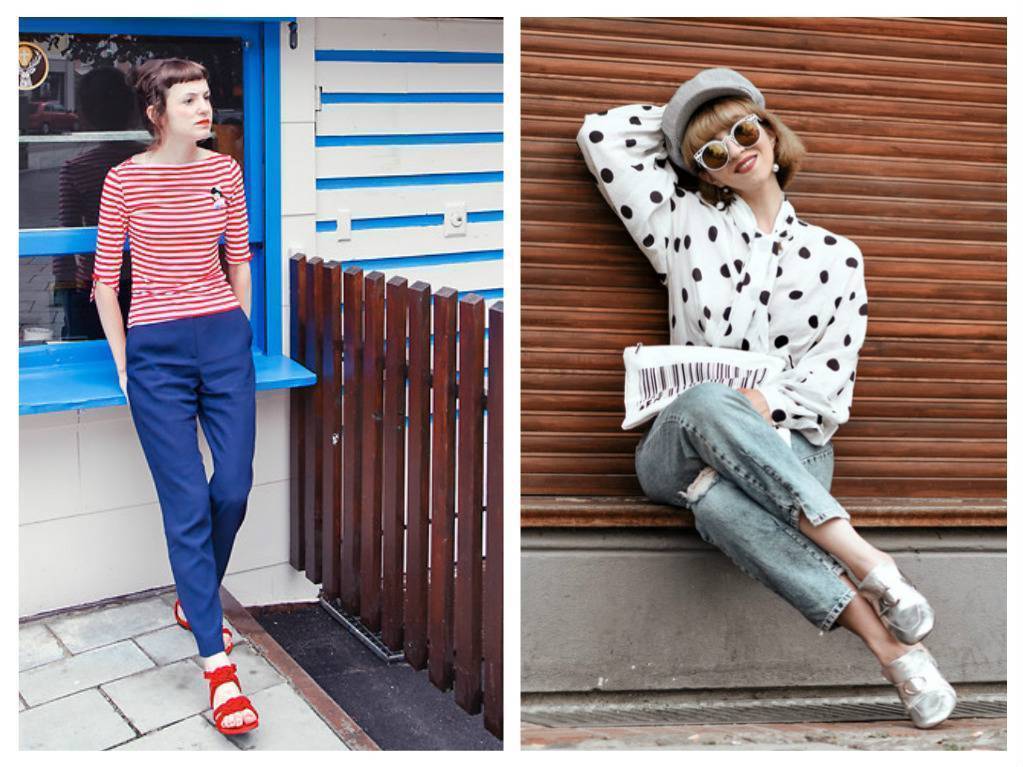 Туфли в тон полоскам на топе, очки под стиль обуви — нельзя сказать, что это выглядит плохо и безвкусно, вовсе нет! Но очень уж консервативно, очень предсказуемо. И это фото из мюнхенских модных блогов! На улицах все еще намного проще.