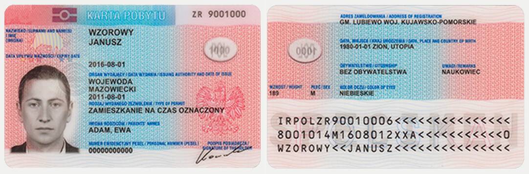 Карта побыту оформляется по приезду в страну, и не может быть оформлена, если вы находитесь за её пределами. Этот документ подтверждает положение иностранного лица, его личность. Выполняет функции внутреннего паспорта гражданина ЕС. Говоря более простым языком – это пластиковая карточка с фотографией и биометрией владельца. Кроме этих данных, также указывается польская прописка и подобие нашего идентификационного кода (PESEL).