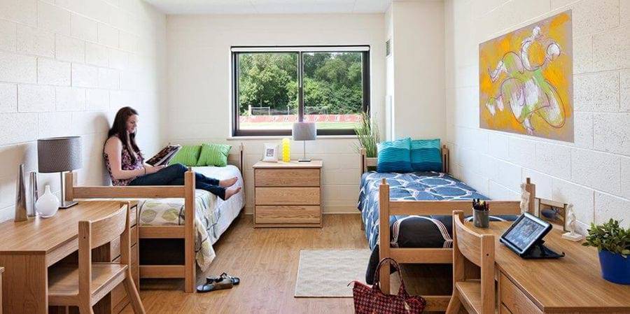 Университет обеспечивает студентам меблированные спальни, полностью оснащенные кухни, кладовые, гостиные, прачечные и прочие необходимые удобства. Все жилые объекты находятся в 3–5 минутах ходьбы от учебных корпусов.