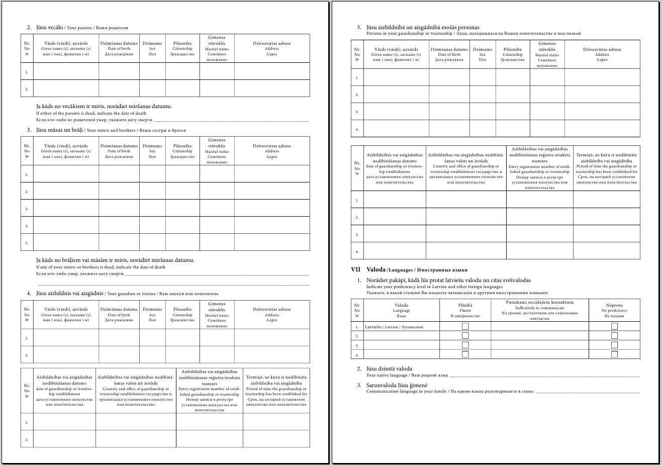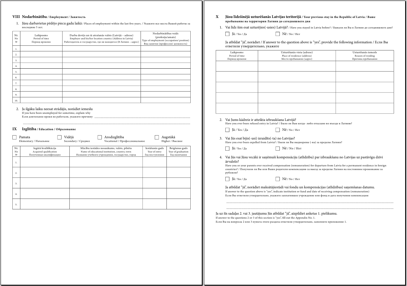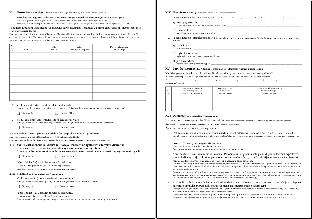 Бумаги принимаются на пяти языках (включая русский), но выданные в Латвии – только на латышском. К основному пакету прикладываются подтверждения оснований для въезда (оригиналы и фотокопии)