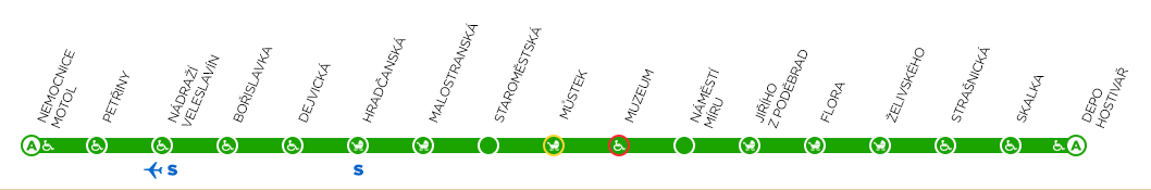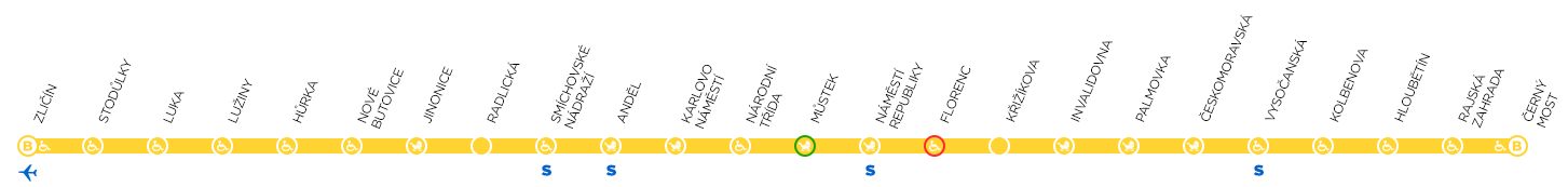 Схема станций метро Праги Ветка-B