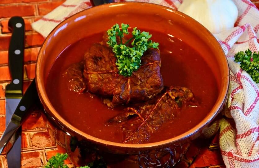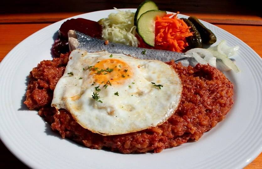Внешне блюдо напоминает сырой фарш, поэтому многие туристы побаиваются его дегустировать. Не отказывайтесь от этого удовольствия. Это блюдо не похоже ни на одно другое – его в Германии непременно нужно попробовать. Лабскаус – это пропущенная через мясорубку говяжья солонина с отварной свеклой, маринованными огурчиками и луком. Ее жарят на топленом свином сале, а затем тушат в огуречном рассоле и смешивают с толченой картошкой. В Германии это блюдо принято есть с глазуньей, хрустящим огурчиком и рольмопсами (рулетики из маринованной селедки с огурцом внутри). Звучит нестандартно, но попробовать точно стоит.