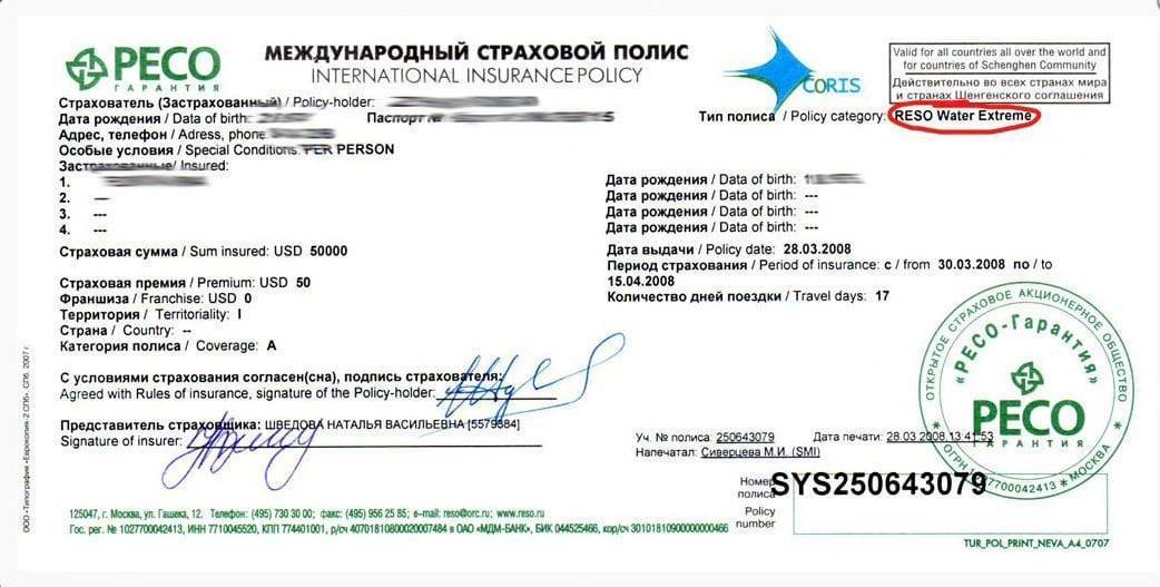 - Страховой полис со стандартной суммой покрытия (30 000 евро);