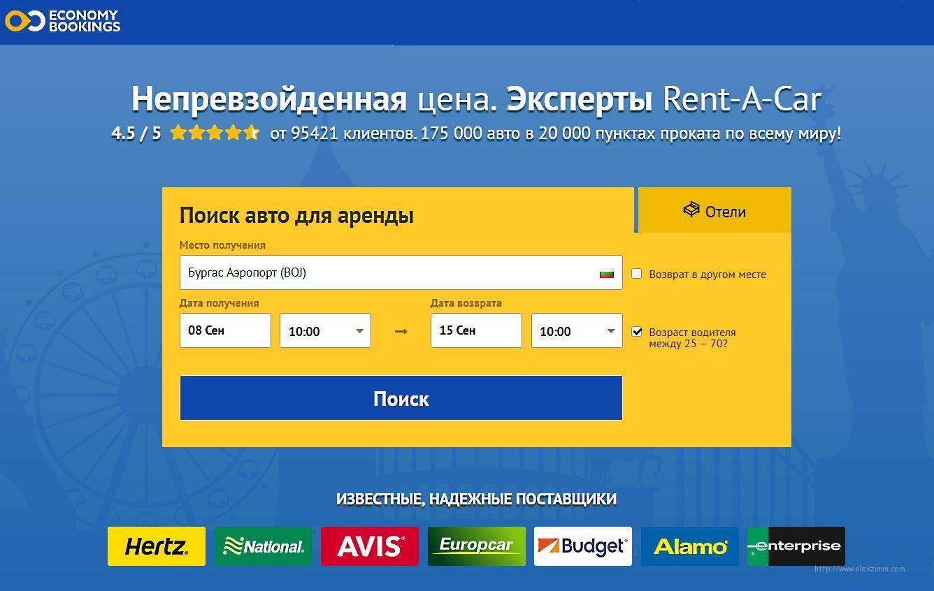 Почему именно эти сайты? Все очень просто: Autoeurope, DiscoverCars, Economybookings и Rentalcars– это лучшие аггрегаторы международных прокатов по Европе (сайты, которые объединяют в себе все самые лучшие предложения всемирно известных международных прокатчиков), а объединил в одном месте все самые лучшие предложения проверенных локальных Болгарских автопрокатов. Причем цены на этих сайтах не выше, а зачастую даже ниже, чем если бронировать у прокатчиков напрямую (проверено в разных странах неоднократно).