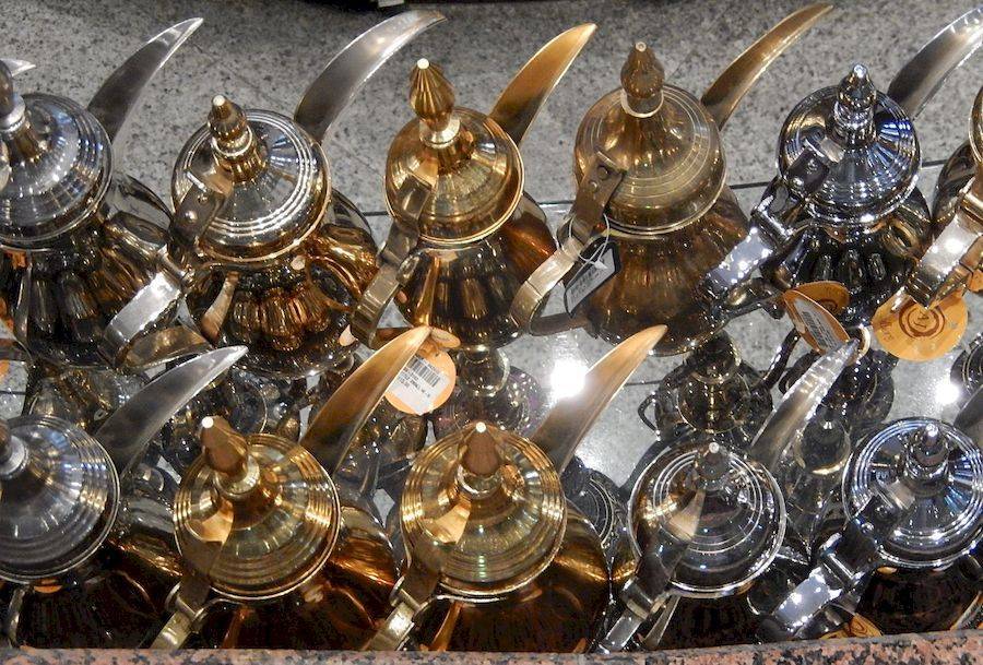 В Эмиратах сувенирная посуда сводится в основном к кофейникам и набору маленьких пиал для употребления кофе — все остальное, как правило, китайская продукция.