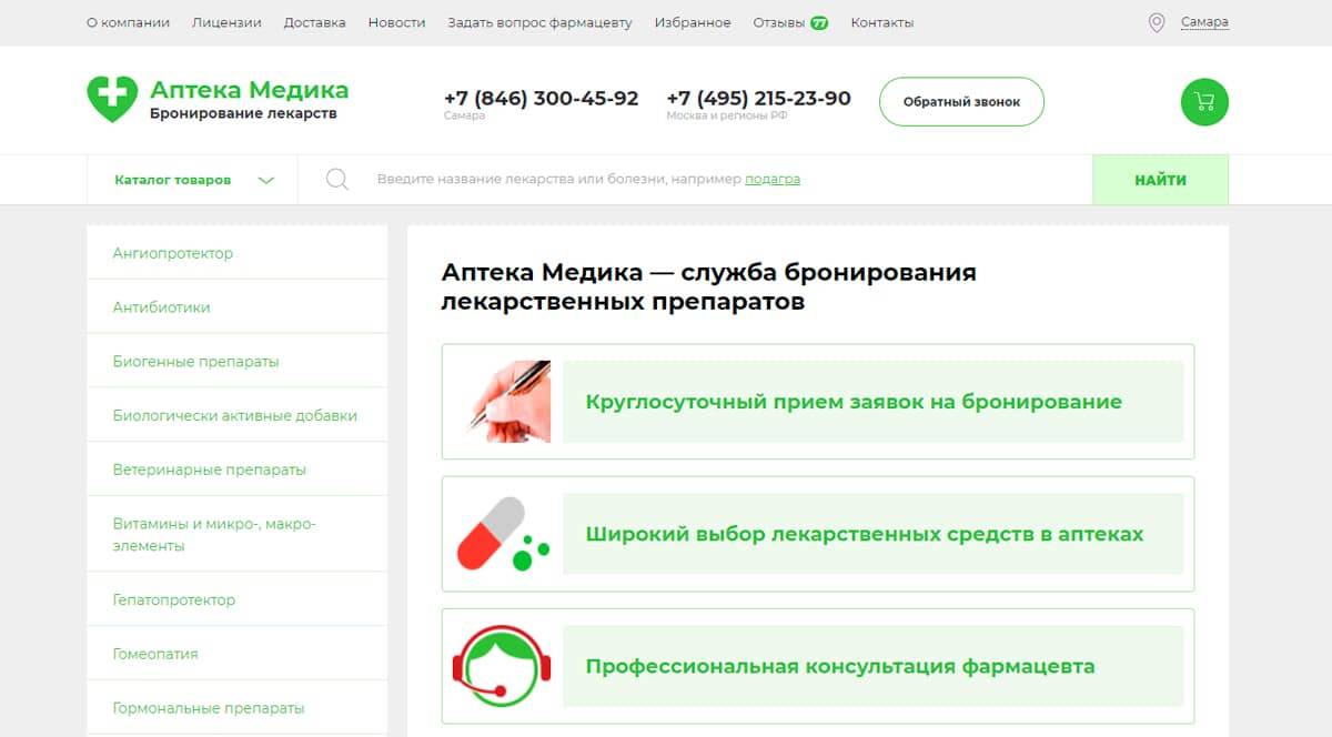 Аптека Медика делает возможным купить редкие дорогостоящие препараты без длительного ожидания. Можно забронировать для дальнейшего выкупа противоопухолевые, противоэпилептические, гормональные препараты. Весь ассортимент сайта удобно рассортирован по фармакологическим группам и по заболеваниям. Прием заявок на лекарства идет круглосуточно (24 часа).
