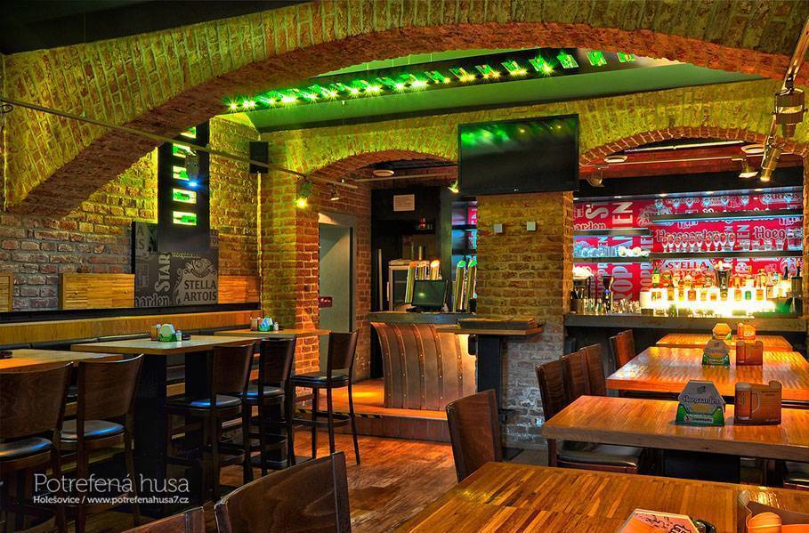 Подстреленная утка – это не одно, а целая сеть заведений с одинаковым названием, расположенных в разных районах Праги. В пивном меню сетевого ресторана – самые разные сорта от завода Старопрамен, а также эксклюзивные пивные коктейли. Интерьер оформлен в современной стиле, но не обошлось и без «пивной» тематики, и которой напоминают окошечки с бутылками, расположенные практически повсюду. Помимо пивной карты интересны и блюда национальной чешской кухни, которые предлагают гостям. Фирменное – половина запечённой утки (отсюда и название). Также есть знаменитое вепрево колено и закуски к пиву, особое место среди которых занимают жареные свиные ребрышки по-чешски. Подстреленная утка позиционируют себя как заведения среднего класса, хоть и называются ресторанами, поэтому цены в них вполне демократичные. Стоимость пол литрового бокала пива начинается от 35 крон, 0,3 и вовсе можно заказать за 25 крон. Отличное место для того, чтобы устроить себе дегустацию продукции Старопрамен.
