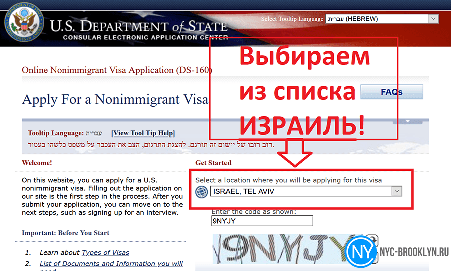 Шаг 1. Заполнение визовой анкеты DS-160 для посольства США в Тель-Авиве
