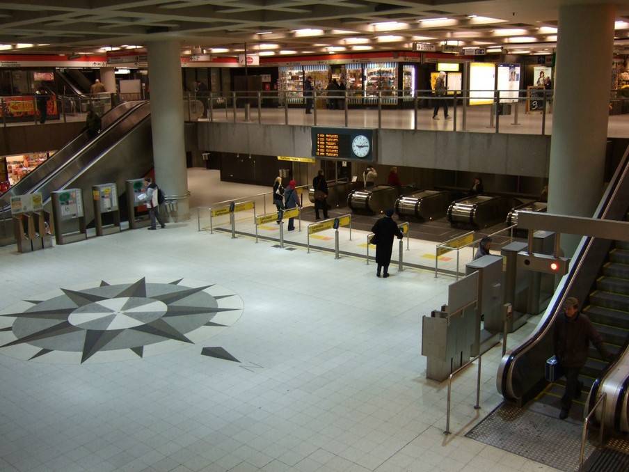 Обратите внимание на желтую линию, которая разделяет территорию станции на две части. Эта линия отделяет ту зону, в которой можно находиться бесплатно, от той, где у вас могут потребовать билет