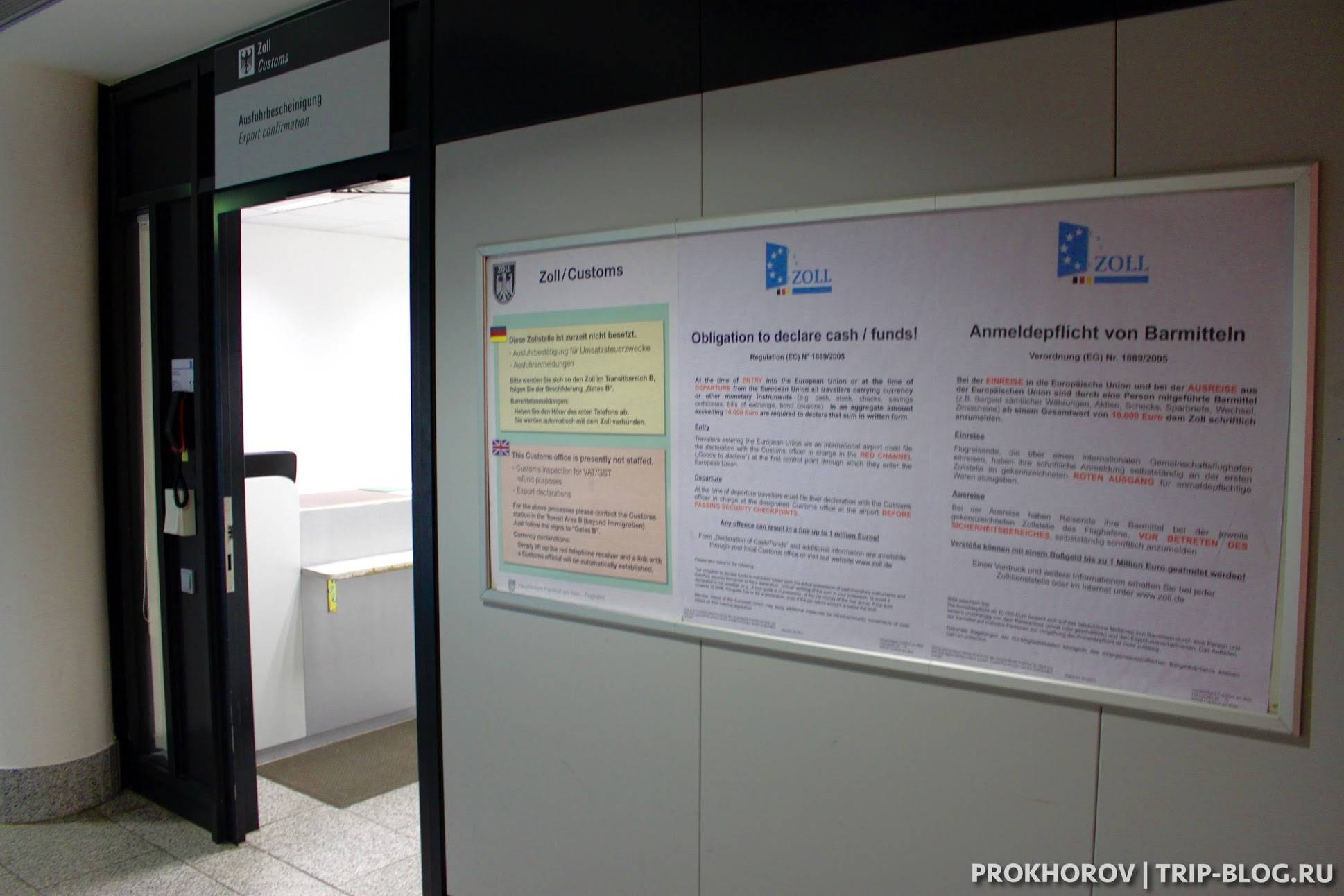 Если покупки находятся в ручной клади, тогда, зарегистрировавшись на рейс, нужно обратиться в ближайший из таможенных стоек – “Export Certification / Ausfuhrbesceinigung” по пути на посадку, расположенных после прохождения предполетного досмотра. Таможенные бюро расположены в Терминале 1 и Терминале 2 после прохождения паспортного контроля.