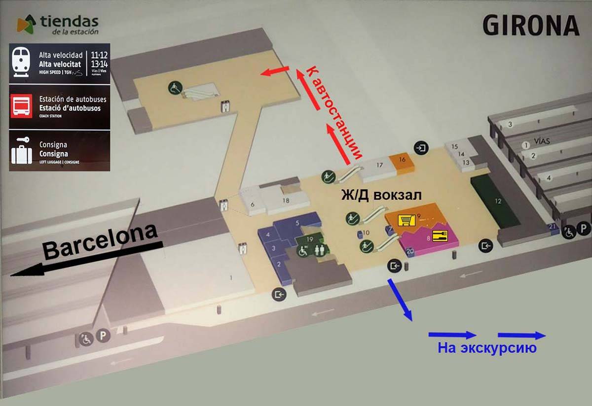 Железнодорожный вокзал расположен в центральной части города. Недалеко от него находятся средневековые кварталы и все основные достопримечательности. Поэтому, планируя вылет из аэропорта Girona-Costa Brava Airport, не забудьте предусмотреть время на посещение памятников этого древнего города с богатой историей.