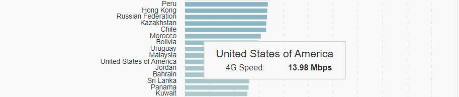 Скорость 4G, правда, в России выше, чем в США: 16,64 Мбит/с против 13,98 Мбит/с в США.