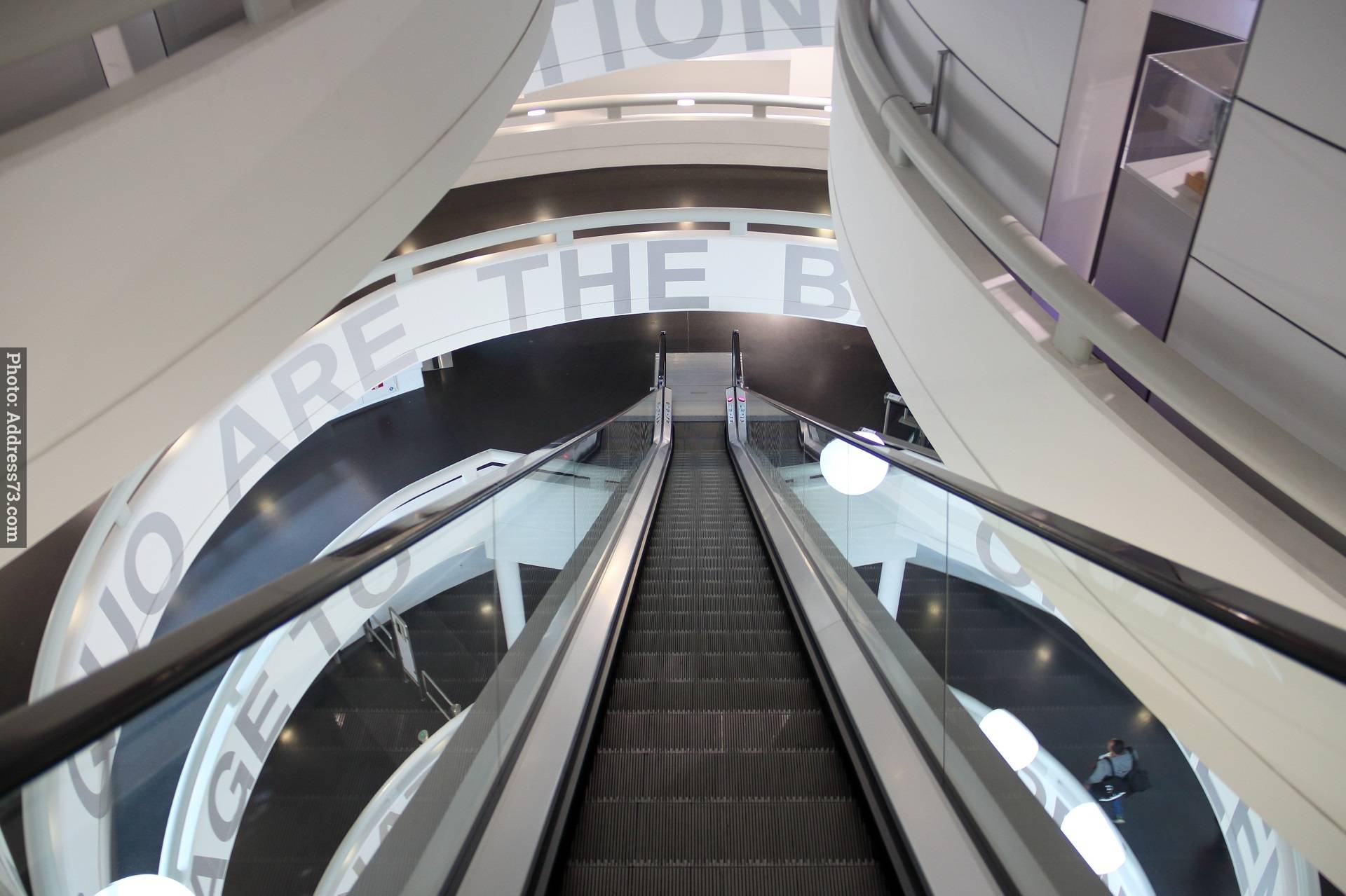 Здесь же находится небольшой кинозал. После осмотра посетители спускаются вниз на эскалаторах.