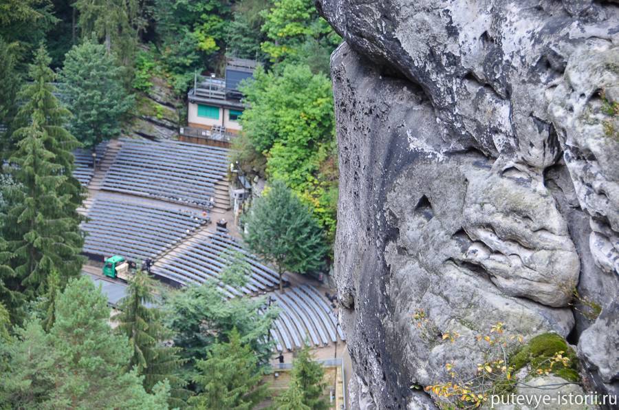 У подножия скал видна сцена открытого театра Felsenbühne («Felsen» — скала, «bühne» — сцена). В театре среди скал и леса ставятся оперы, проводятся музыкальные фестивали.