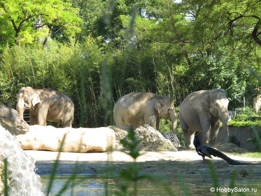 В Tierpark живёт 10 слонов разного возраста – от взрослых гигантов до малышей. Их вольеры оформлены в стиле индийских джунглей с полуразрушенным храмом и бассейном, в котором животные могут купаться в жаркую погоду.