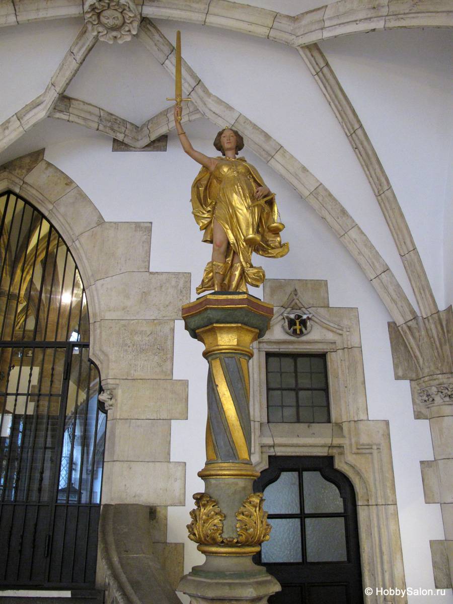 Мне так понравилась дверь, напоминающая какие-то сказочные таинства, что я никак не могла отказать себе в удовольствии посмотреть, что же за этой дверью скрывается. А обстановка, действительно, окутана некой таинственностью, потому что пустынный двор ратуши настолько контрастирует с наполненной народом площадью, что поневоле готовишься к любым сюрпризам)))