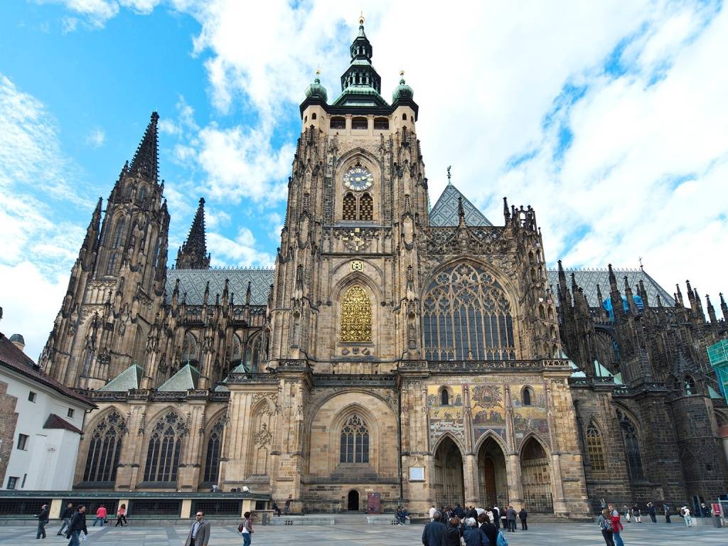 Самое знаменитое готическое строение чешской столицы и одно из самых известных — собор святого Вита. На его месте когда-то стояла романская ротонда, построенная ещё святым Вацлавом. В средневековье по всей Европе возводились храмы с родовыми княжескими усыпальницами. Такая роль отводилась и собору Вита, строительство которого началось в XIV веке. Великолепное сооружение знаменито своими островерхими башнями, разноцветными витражами, мозаичными интерьерами.