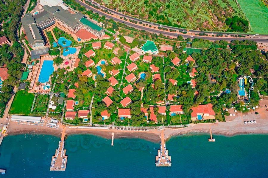 Gravel Hotels 5* — отель по системе «ультра все включено» в Кемере с хорошими отзывами и соотношением «цена-качество». На территории отеля 3 водные горки, 4 бассейна, рестораны (итальянский, турецкий, интернациональный, морепродукты, гриль), бистро, 9 баров, турецкий хамам, сауна, джакузи, фитнес-центр, анимация и развлечения. Цены от 39 тыс. руб. с человека.