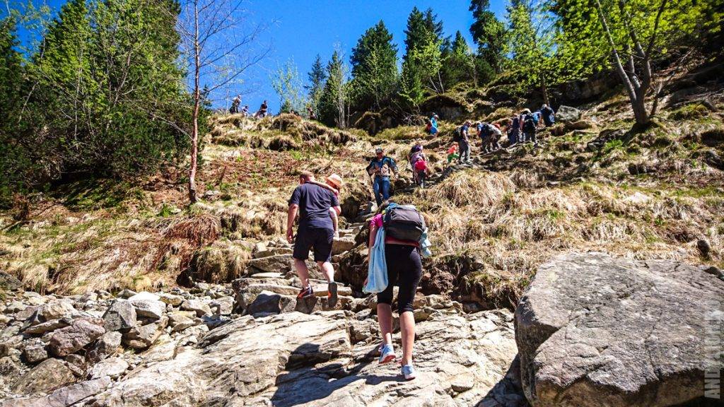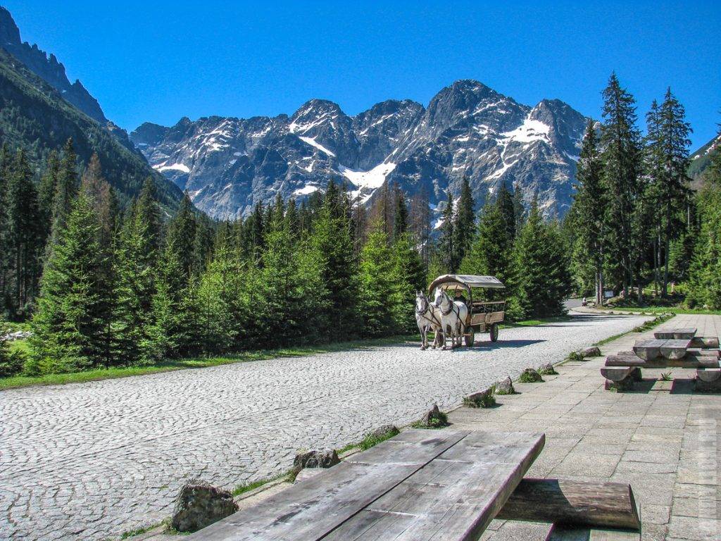 Как преодолеть 9 км пути, каждый решает сам. Повозка стоит 35-40 злотых с человека, кстати, спуститься стоит чуть дешевле. Довезет она вас до поляны Włosienica, а оставшиеся 2 км все равно придётся идти пешком. Да и полюбоваться водопадами Мицкевича вам в этом случае не удастся — повозки проезжают мимо водопада без остановок. Но зато вы будете бодры и полны сил.
